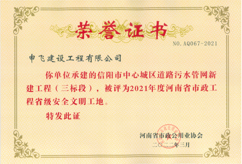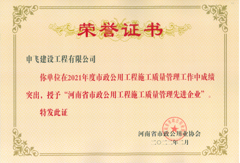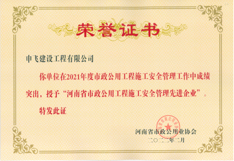 - [04-12]申飛建工再獲“省先進(jìn)施工企業(yè)”、 “市政金杯獎(jiǎng)”等多項(xiàng)榮譽(yù)